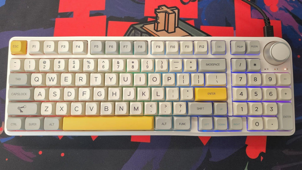 'The TH96 comes stock with custom switches and keycaps, though both are easily replaceable. The switches are Epomaker’s lightweight Flamingo linears, which come factory lubed and have a consistently smooth key press all the way to the bottom of their travel and a 35-gram actuation force. I was worried they would be too light, but that force jumps to 45 grams to bottom out, which is the same as Cherry MX Reds. The lube job is good, so there’s no need to lube these again to have a smooth and great-sounding typing experience.'