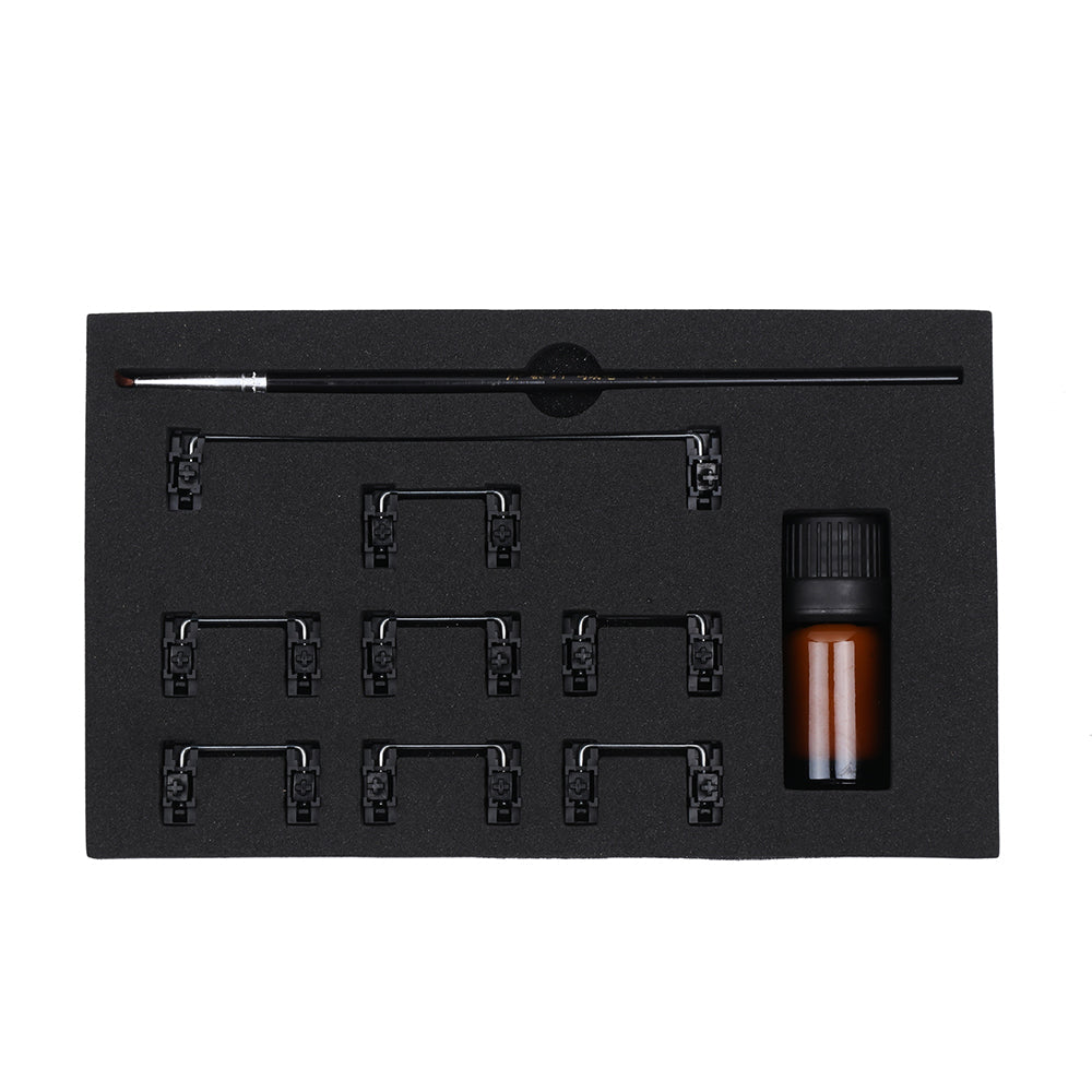 The Epomaker Stabilizers set comes with fine lubricant and a brush for lubricating. The stabs provides a more smooth typing feeling after lubed, which gives more fun and options for DIYers. Make your keyboard upgraded with the refined stabilizers!