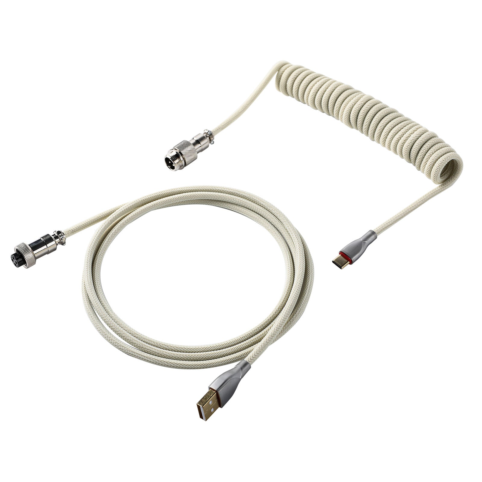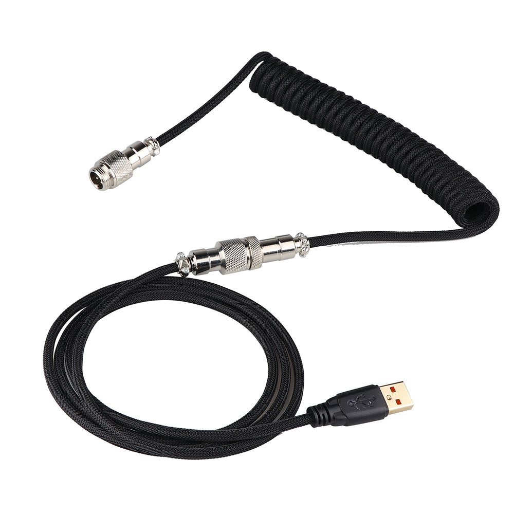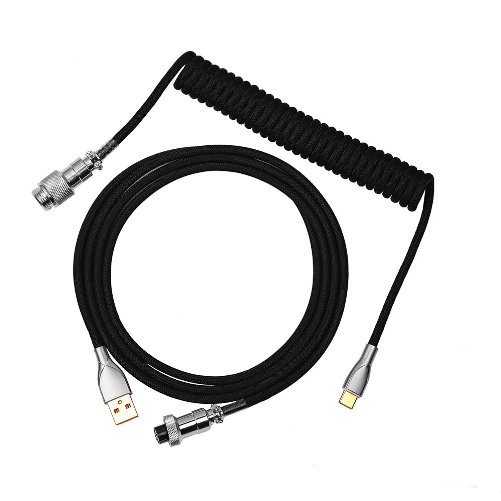 Custom Coiled Double Sleeved Type-C Cable With Detachable Aviator Connector for Mechanical Keyboard