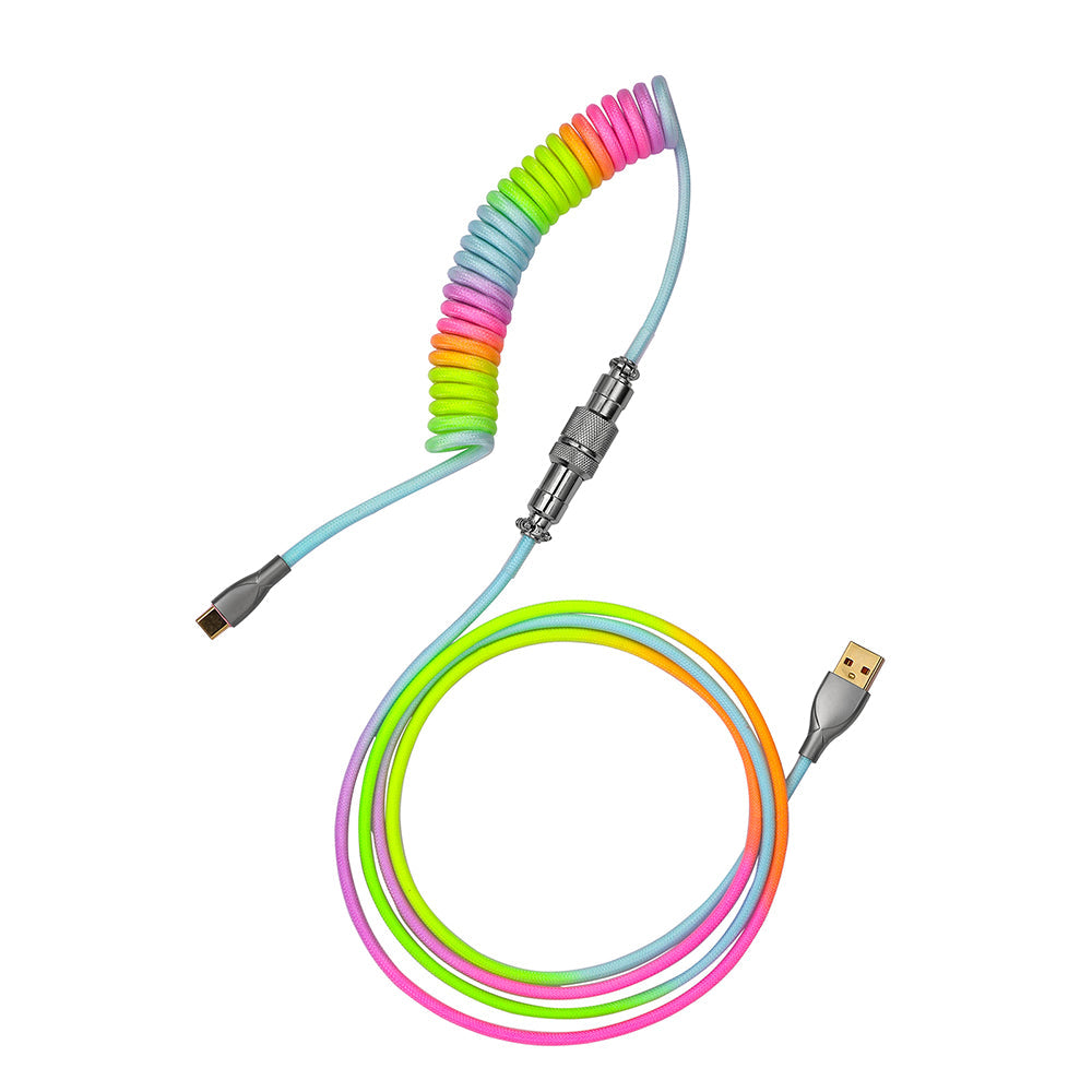 For versatile connectivity, each one is equipped with a detachable aviator port to accommodate different connectors. Included in this run is a USB-C connector cable to fit modern boards. The Rainbow-C cable is designed with Type-C aviator interface. On the USB-A end, the Rainbow-C cable is with the high-quality alloy connector so the cable stays firm and presents a neat form on your desktop.